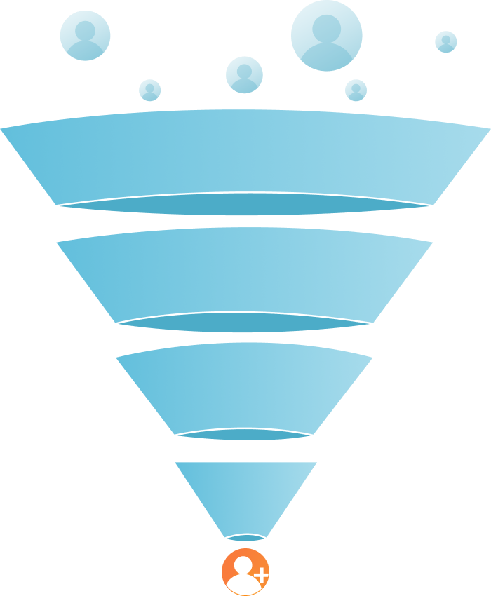 Sprichst du statt 1.000 gleich 2.000 Menschen an, dann werden daraus 2-3 Kunden. Und wenn du 5.000 Menschen erreichst, machst du daraus schon 7-8 Neukunden. Je mehr Kunden du vorn ansprichst, desto mehr Neukunden wirst du am Ende gewinnen.
